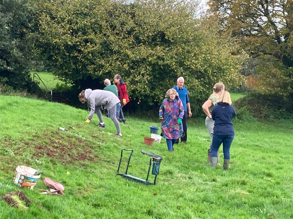 William Wordsworth, author of the famous poem I wandered lonely as a cloud wrote: “One daffodil is worth a thousand pleasures”. Since we planted over 1000 bulbs into the sloping bank in the lower field, that should provide a million pleasures when they bloom in Spring! Thanks to everyone who helped to make this such a special morning on 29 October, The event enabled us to get together around the newly planted raised beds to celebrate completion of the first stage of our Community Garden project.