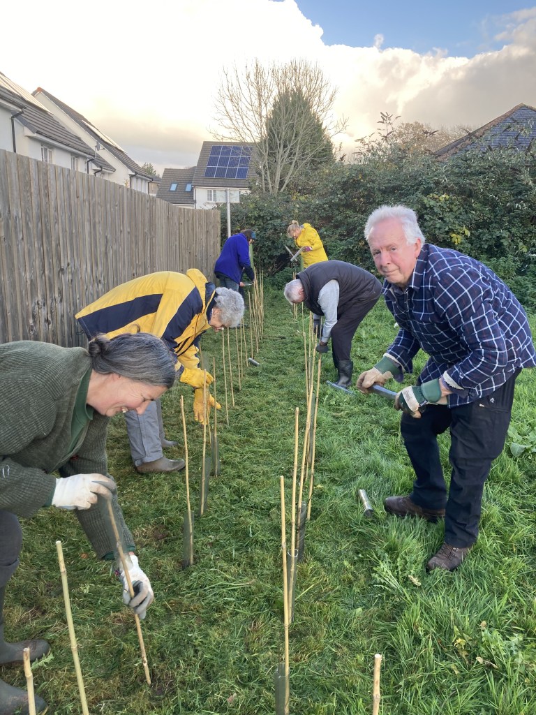 The extensive rains of the past month meant the soil was in perfect condition for planting — luckily for us, we enjoyed a dry day and managed to complete the planting in the afternoon. We planted 12 new trees (plum, medlar, apple and quince) in the orchard and mixed species of hedging plants on the perimeter of the lower field, including hawthorn, dog rose, downy birch, silver birch, hazel, rowan, sessile oak, elder, and crab apple. Special thanks to Stephen and the planting team from PCC who will be returning in the coming months to remulch the trees and water when necessary to ensure that they become well established. We are really grateful for the support of the Plymouth and South Devon Community Forest initiative. In the New Year, we will begin to develop plans for planting in the Upper Field in 2023/4